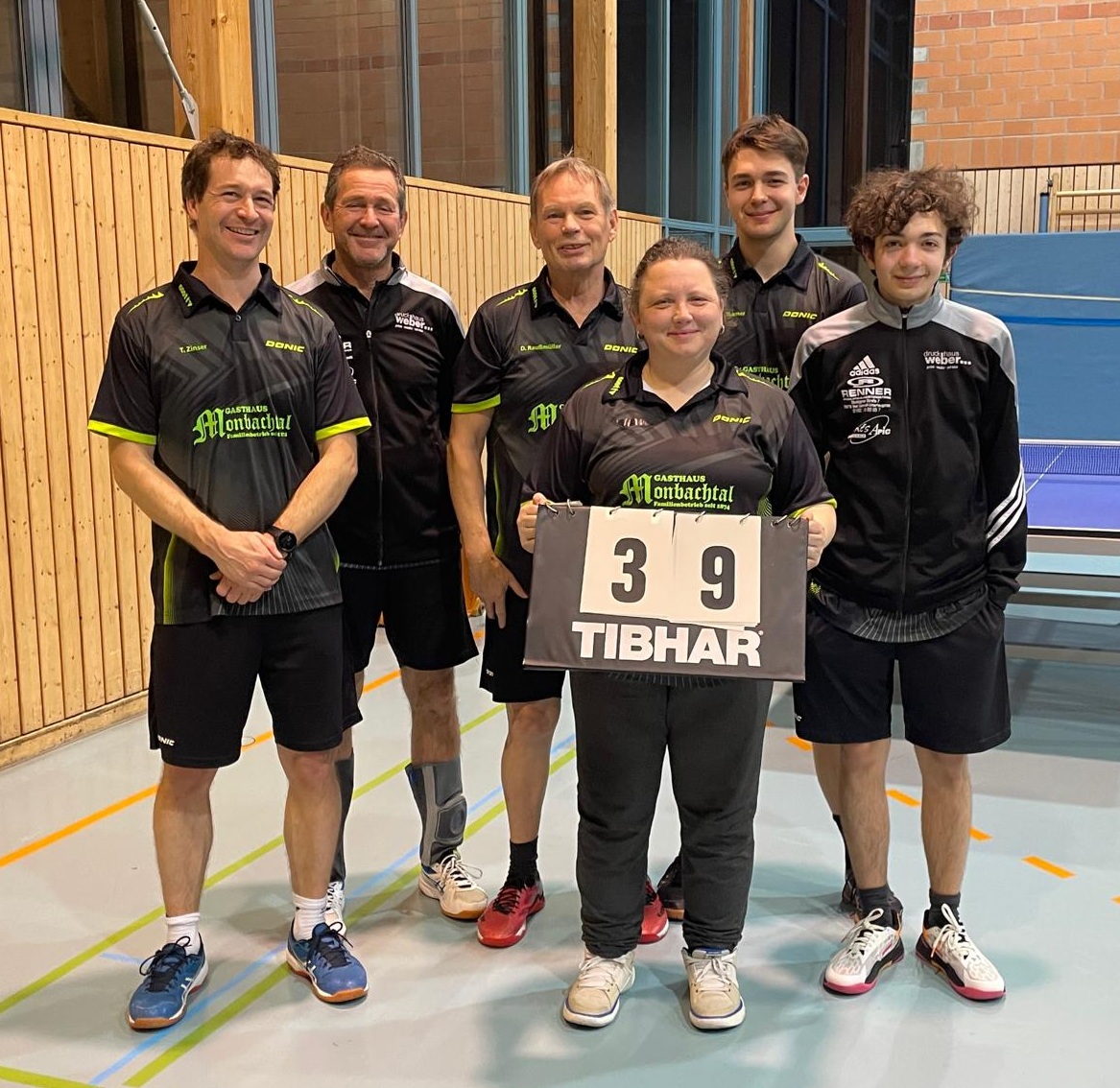Lenn/Tanja lagen mit 1:2 in Rückstand und die anderen beiden Doppel mit Martin/Dieter, Tobi/Lasse sogar mit 0:2. Dank ihrer kämpferischen Fähigkeiten konnten alle 3 Doppel im 5. Satz zugunsten des MUTTV entschieden werden. Tanja, Dieter und Tobi konnten den Vorsprung auf 6:1 ausbauen. Das nächste Spiel ging an Gechingen. Lenn und wiederum Tanja konnten die Führung auf 8:2 ausbauen. So blieb es Tobi überlassen, mit einem klaren 3:0-Erfolg den 9:3-Sieg unserer Erwachsenen II einzutüten. Klasse Leistung.