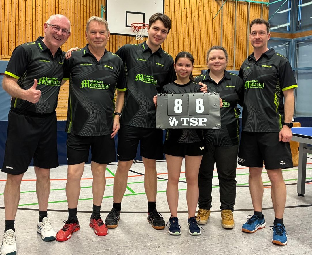 In einem kampfbetonten Spiel behielt der MUTTV am Ende die Oberhand. Nach den Eingangsdoppeln stand es 2:1 für den MUTTV. Beide Doppel mit Jannik / Andi und Nils / Lenn wurden in der Verlängerung des fünften Satzes gewonnen. Vorne konnte Jannik zum 3:1 nachlegen. Nils konnte einen 0:2 Rückstand drehen und sein Spiel knapp im 5. Satz zu Gunsten des MUTTV entscheiden. Die nächsten 3 Partien gingen allesamt an die Gäste und der MUTTV lag mit 4:5 im Rückstand. Jannik war wiederum siegreich und konnte zum 5:5 ausgleichen. Das nächste Spiel ging an Nagold. Nils leitete mit seinem Sieg zum 6:6 den Endspurt des MUTTV Teams ein. Die folgenden Partien von Andreas, Hendrik und Lenn waren sehr hart umkämpft. Der Kampfgeist unserer Jungs wurde belohnt. Allen voran war es Lenn, der im letzten Spiel in einem nervenaufreibenden Match die Oberhand behielt und den 9:6 Sieg eintütete. Was für ein Finale. Von insgesamt 6 Spielen im 5. Satz gingen 5 Spiele an den MUTTV. Das spricht für den Kampfgeist unserer Jungs. In der Tabelle belegt man mit 16:12 Punkten nun den 5. Tabellenplatz.