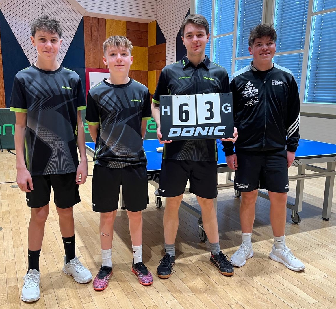 In den Eingangsdoppeln konnten Lasse / Jona R. das gegnerische Doppel 1 bezwingen und den Punkt zum 1:1 holen. Vorne konnten Lasse und Jona W. mit 2 weiteren Siegen die Führung zum 3:1 ausbauen. Im hinteren Paarkreuz war Simon erfolgreich und konnte den Vorsprung zum 4:2 halten. Vorne war abermals Lasse erfolgreich und erhöhte auf 5:2. Jona R. konnte mit seinem Sieg den 6:3 Endstand herstellen. Mit 4:0 Punkten ist unsere Jugend II aktueller Tabellenführer der Bezirksklasse.
